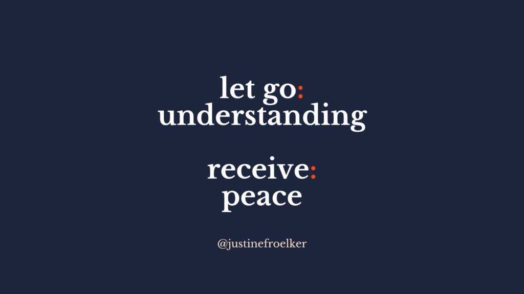 I am learning that if I want peace, you know the kind of peace that surpasses all understanding, I have to let go of my need to fully understand.